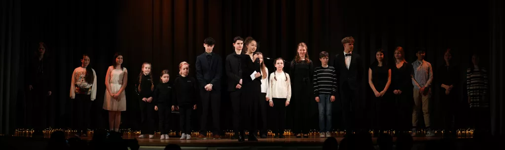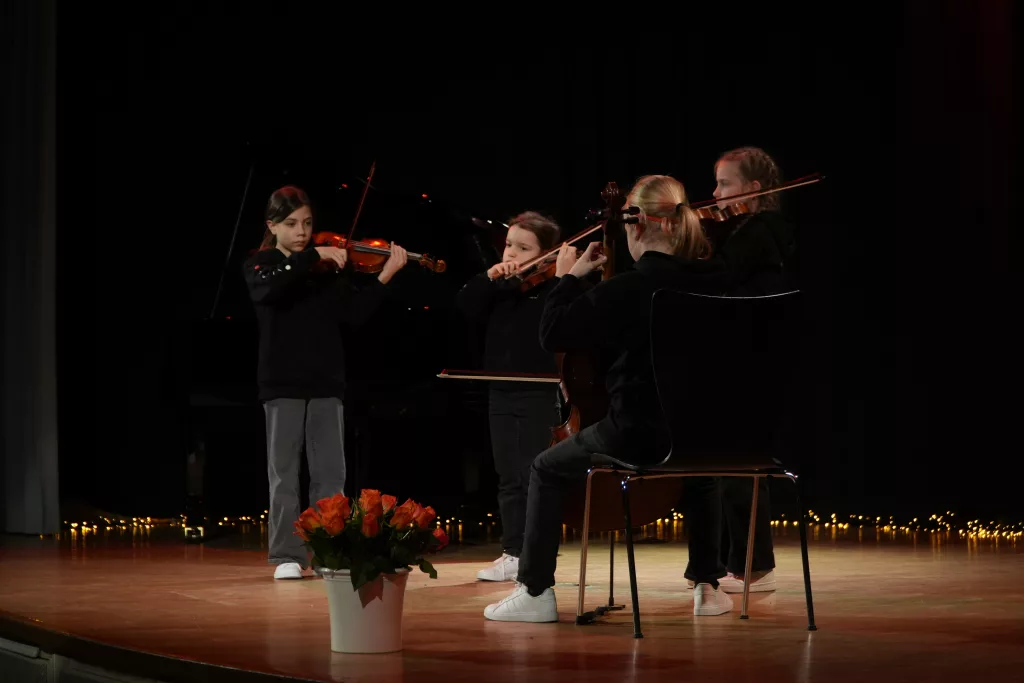 Luise Kreie und Arsenii Ovsiannik führten das Publikum durch das kurzweilige Programm. Unsere Musiklehrerin Franziska Drescher hatte seit Monaten Schüler aller Altersklassen ermuntert teilzunehmen und die Aula wieder mit Liebe zum Detail festlich geschmückt. Alle Beiträge waren ein Genuss und die Vielfalt von Streichern, Klavier und Gesang war unglaublich beeindruckend. Besonders schön war, dass für das Publikum nicht die Perfektion zählte, sondern die Begeisterung für das gewählte Stück und die Freude am Ende über die gelungene Darbietung. Wer einen Blick in das Programm wirft, kann feststellen, dass hier klassische, romantische und moderne Beiträge auf ganz hohem Niveau gezeigt wurden, die die Zuhörer sichtlich berührten. Das erklärt übrigens den Termin des Konzerts im Frühjahr, weil in diesen Wochen auch Jugend musiziert und die fachpraktische Abiturprüfung liegen.