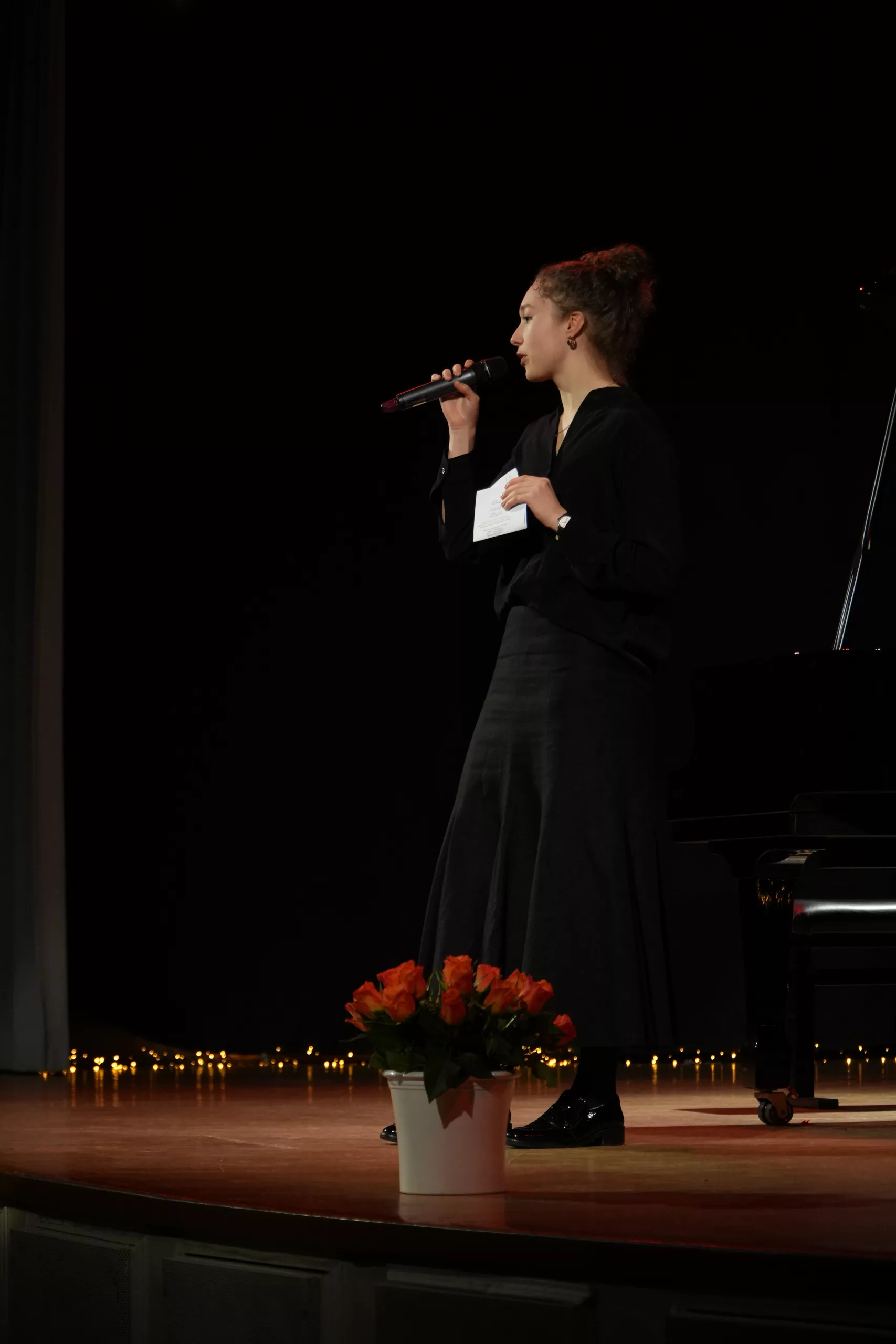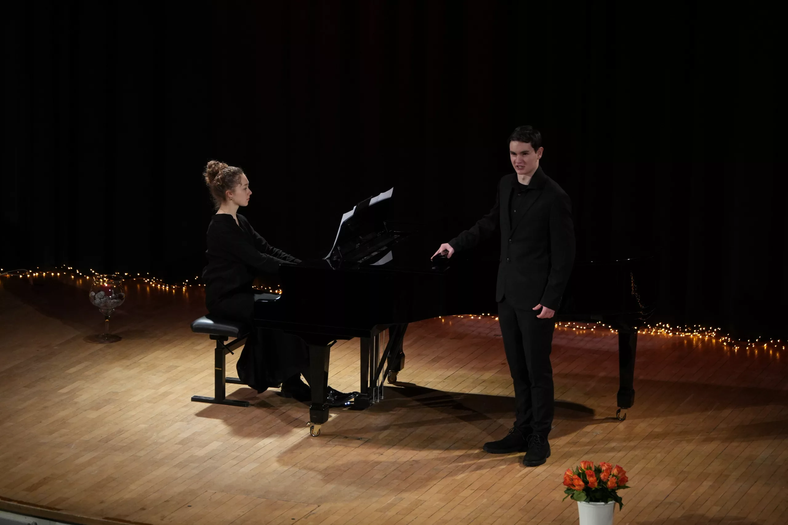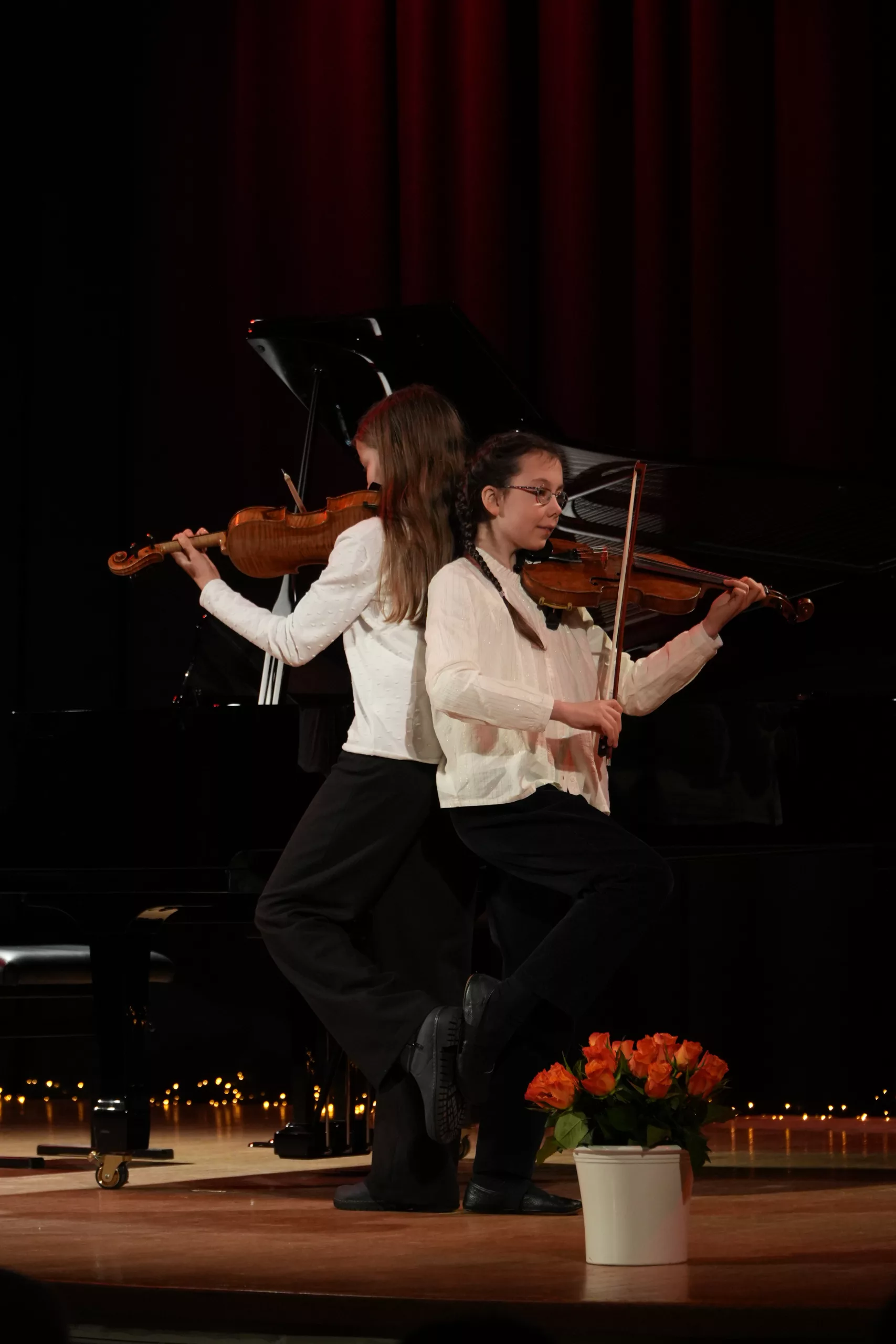 Luise Kreie und Arsenii Ovsiannik führten das Publikum durch das kurzweilige Programm. Unsere Musiklehrerin Franziska Drescher hatte seit Monaten Schüler aller Altersklassen ermuntert teilzunehmen und die Aula wieder mit Liebe zum Detail festlich geschmückt. Alle Beiträge waren ein Genuss und die Vielfalt von Streichern, Klavier und Gesang war unglaublich beeindruckend. Besonders schön war, dass für das Publikum nicht die Perfektion zählte, sondern die Begeisterung für das gewählte Stück und die Freude am Ende über die gelungene Darbietung. Wer einen Blick in das Programm wirft, kann feststellen, dass hier klassische, romantische und moderne Beiträge auf ganz hohem Niveau gezeigt wurden, die die Zuhörer sichtlich berührten. Das erklärt übrigens den Termin des Konzerts im Frühjahr, weil in diesen Wochen auch Jugend musiziert und die fachpraktische Abiturprüfung liegen.