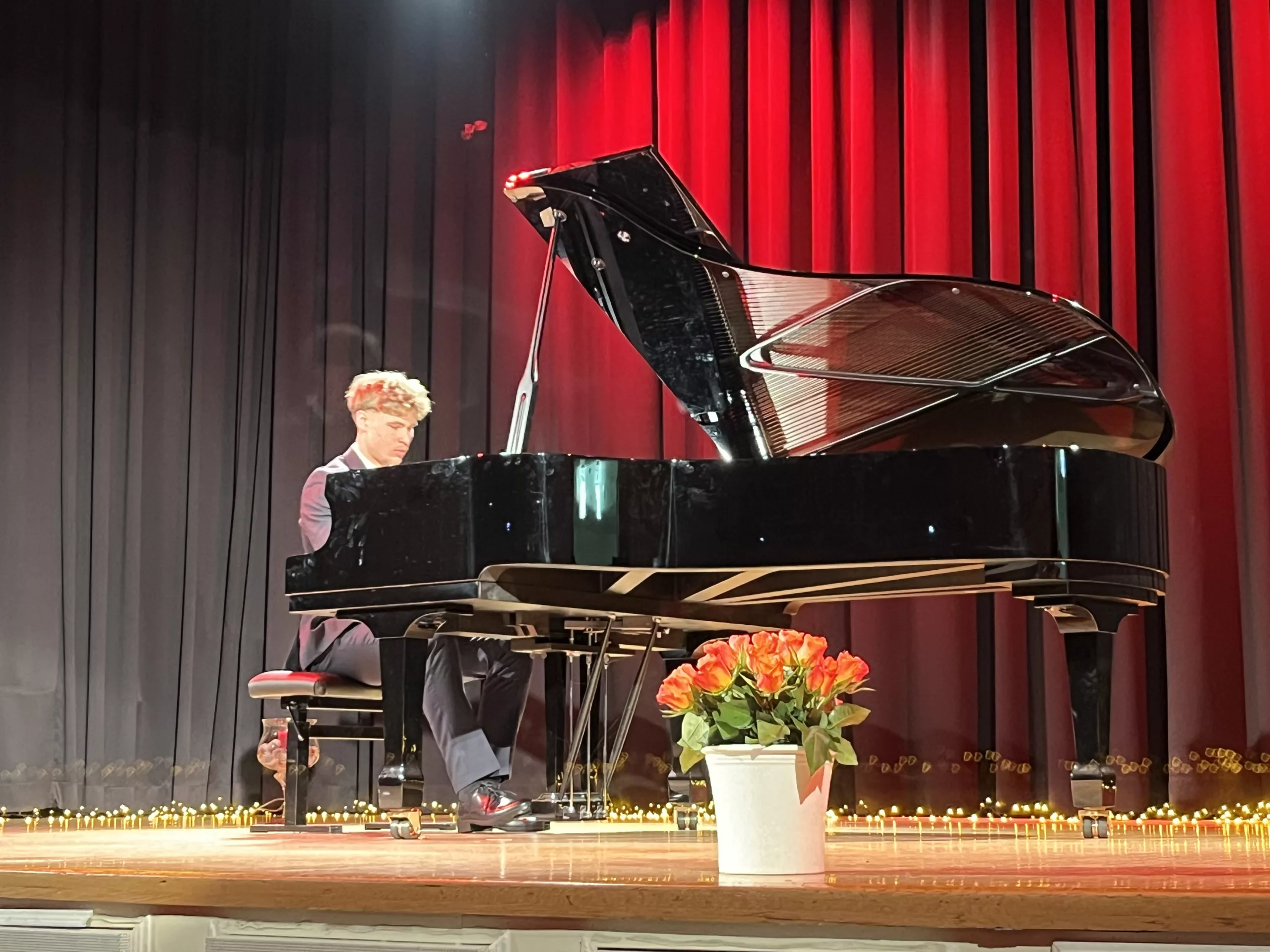 Luise Kreie und Arsenii Ovsiannik führten das Publikum durch das kurzweilige Programm. Unsere Musiklehrerin Franziska Drescher hatte seit Monaten Schüler aller Altersklassen ermuntert teilzunehmen und die Aula wieder mit Liebe zum Detail festlich geschmückt. Alle Beiträge waren ein Genuss und die Vielfalt von Streichern, Klavier und Gesang war unglaublich beeindruckend. Besonders schön war, dass für das Publikum nicht die Perfektion zählte, sondern die Begeisterung für das gewählte Stück und die Freude am Ende über die gelungene Darbietung. Wer einen Blick in das Programm wirft, kann feststellen, dass hier klassische, romantische und moderne Beiträge auf ganz hohem Niveau gezeigt wurden, die die Zuhörer sichtlich berührten. Das erklärt übrigens den Termin des Konzerts im Frühjahr, weil in diesen Wochen auch Jugend musiziert und die fachpraktische Abiturprüfung liegen.