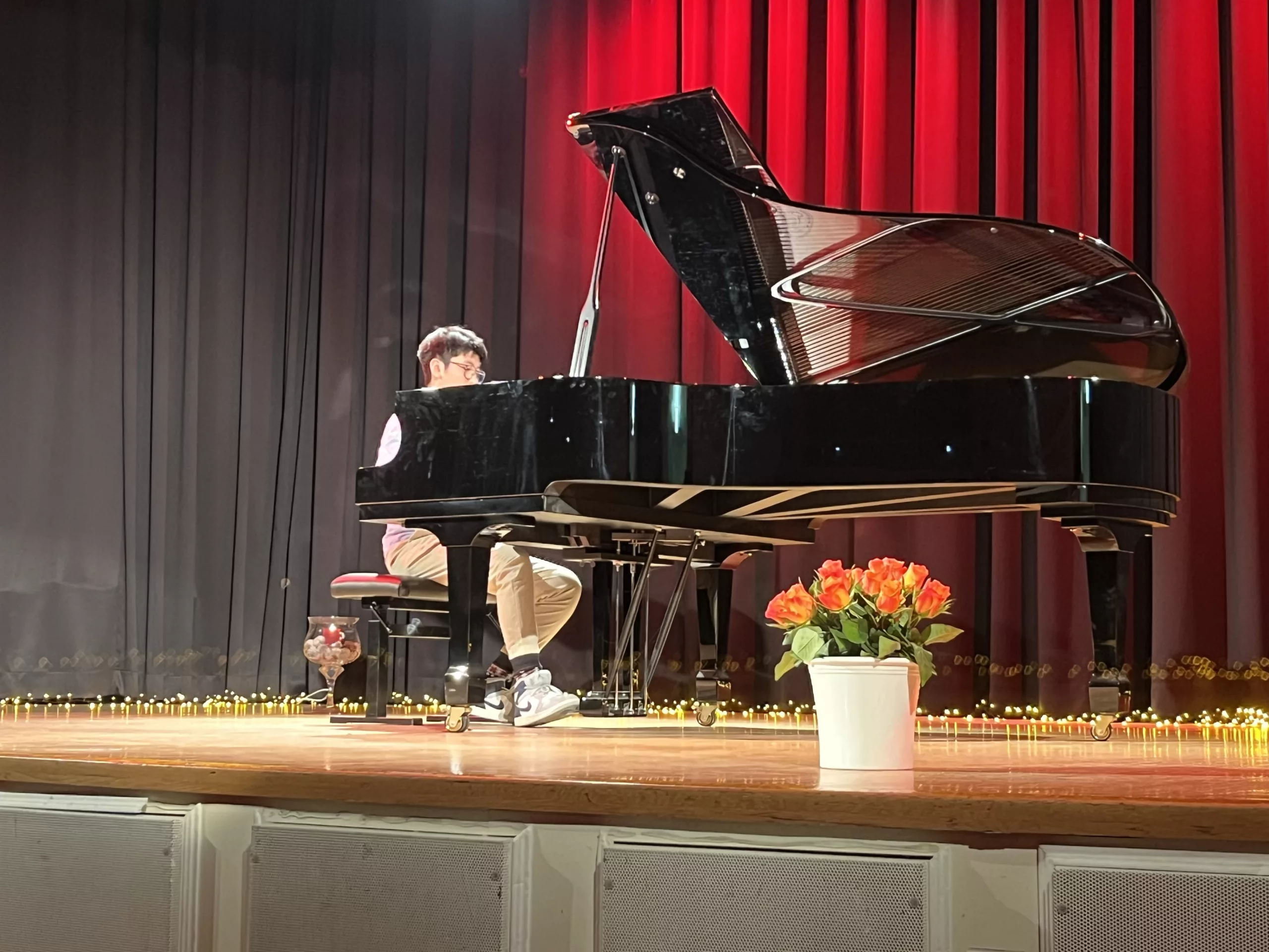 Luise Kreie und Arsenii Ovsiannik führten das Publikum durch das kurzweilige Programm. Unsere Musiklehrerin Franziska Drescher hatte seit Monaten Schüler aller Altersklassen ermuntert teilzunehmen und die Aula wieder mit Liebe zum Detail festlich geschmückt. Alle Beiträge waren ein Genuss und die Vielfalt von Streichern, Klavier und Gesang war unglaublich beeindruckend. Besonders schön war, dass für das Publikum nicht die Perfektion zählte, sondern die Begeisterung für das gewählte Stück und die Freude am Ende über die gelungene Darbietung. Wer einen Blick in das Programm wirft, kann feststellen, dass hier klassische, romantische und moderne Beiträge auf ganz hohem Niveau gezeigt wurden, die die Zuhörer sichtlich berührten. Das erklärt übrigens den Termin des Konzerts im Frühjahr, weil in diesen Wochen auch Jugend musiziert und die fachpraktische Abiturprüfung liegen.