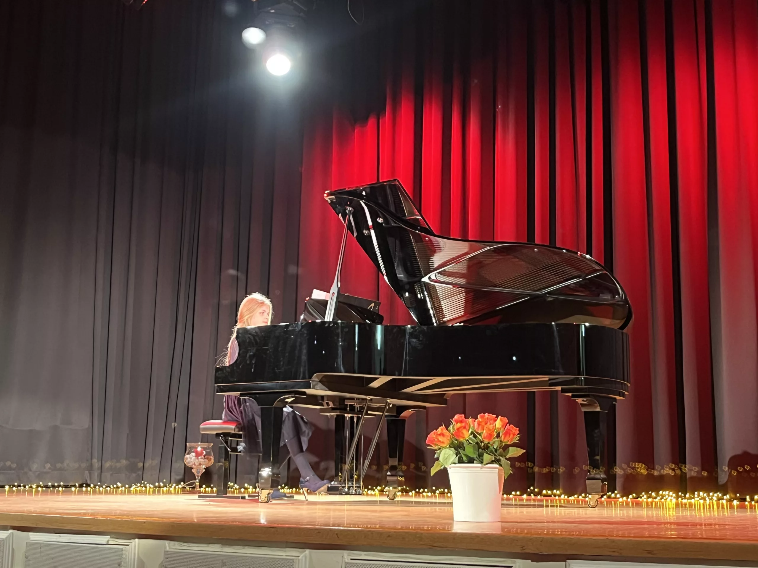 Luise Kreie und Arsenii Ovsiannik führten das Publikum durch das kurzweilige Programm. Unsere Musiklehrerin Franziska Drescher hatte seit Monaten Schüler aller Altersklassen ermuntert teilzunehmen und die Aula wieder mit Liebe zum Detail festlich geschmückt. Alle Beiträge waren ein Genuss und die Vielfalt von Streichern, Klavier und Gesang war unglaublich beeindruckend. Besonders schön war, dass für das Publikum nicht die Perfektion zählte, sondern die Begeisterung für das gewählte Stück und die Freude am Ende über die gelungene Darbietung. Wer einen Blick in das Programm wirft, kann feststellen, dass hier klassische, romantische und moderne Beiträge auf ganz hohem Niveau gezeigt wurden, die die Zuhörer sichtlich berührten. Das erklärt übrigens den Termin des Konzerts im Frühjahr, weil in diesen Wochen auch Jugend musiziert und die fachpraktische Abiturprüfung liegen.