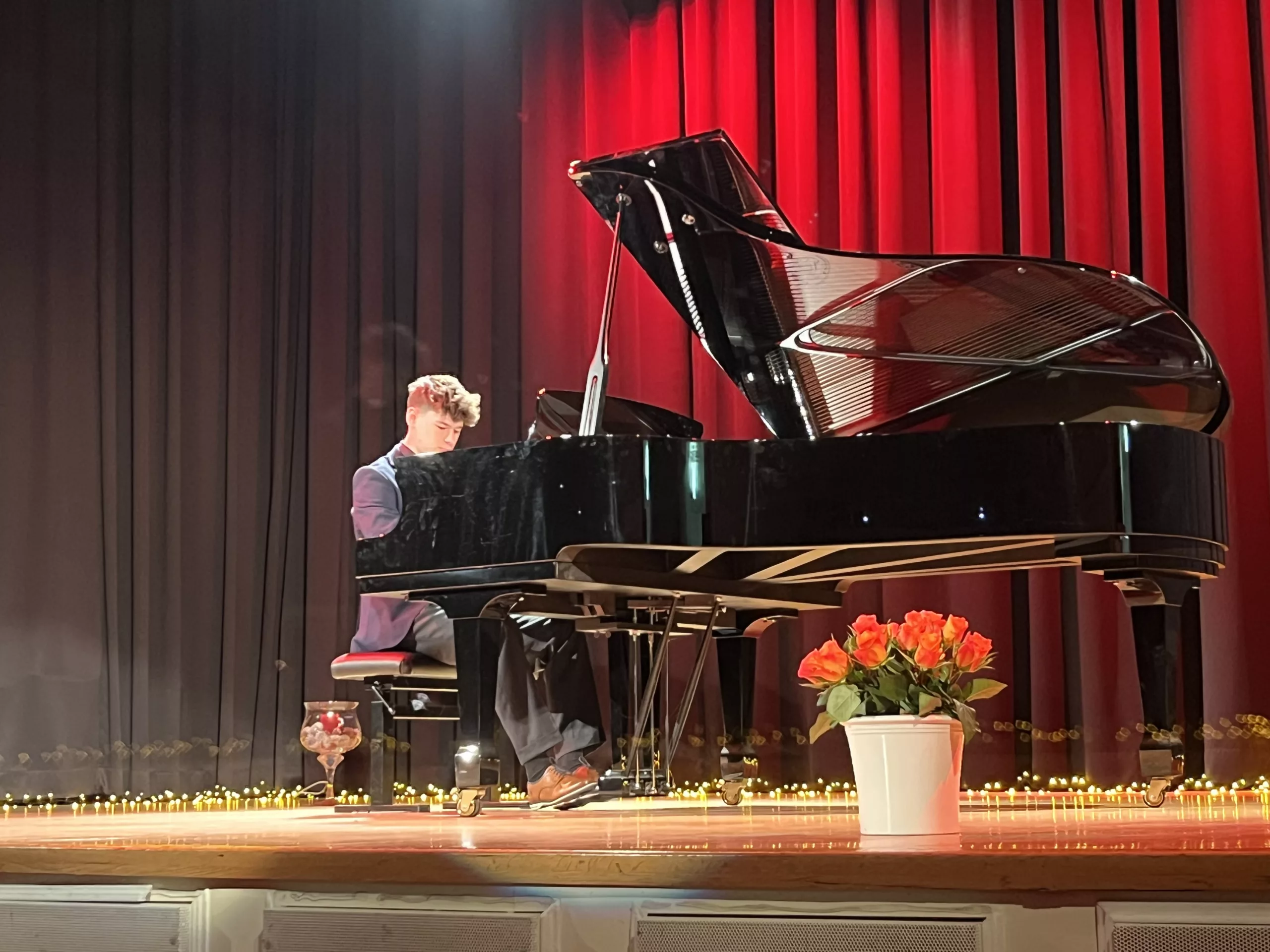 Luise Kreie und Arsenii Ovsiannik führten das Publikum durch das kurzweilige Programm. Unsere Musiklehrerin Franziska Drescher hatte seit Monaten Schüler aller Altersklassen ermuntert teilzunehmen und die Aula wieder mit Liebe zum Detail festlich geschmückt. Alle Beiträge waren ein Genuss und die Vielfalt von Streichern, Klavier und Gesang war unglaublich beeindruckend. Besonders schön war, dass für das Publikum nicht die Perfektion zählte, sondern die Begeisterung für das gewählte Stück und die Freude am Ende über die gelungene Darbietung. Wer einen Blick in das Programm wirft, kann feststellen, dass hier klassische, romantische und moderne Beiträge auf ganz hohem Niveau gezeigt wurden, die die Zuhörer sichtlich berührten. Das erklärt übrigens den Termin des Konzerts im Frühjahr, weil in diesen Wochen auch Jugend musiziert und die fachpraktische Abiturprüfung liegen.