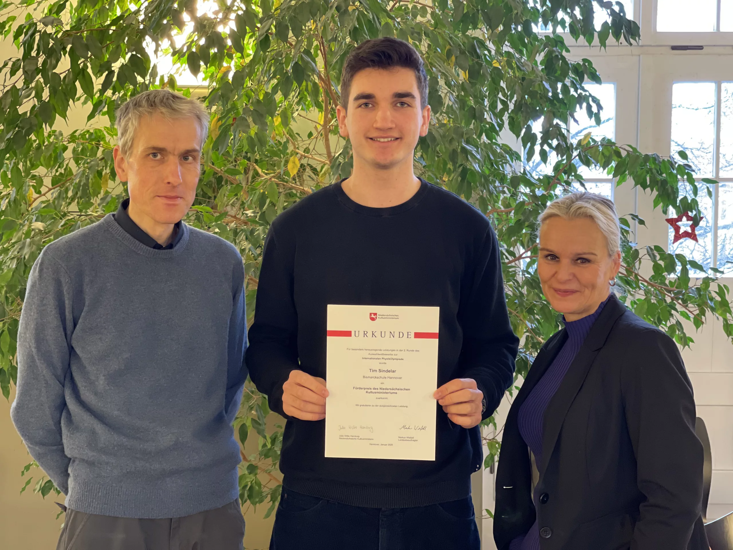 Wir sind gespannt und ahnen, dass wir noch einiges zu erwarten haben, denn Tim ist nicht nur bei der PhysikOlympiade, sondern auch bei der Mathematik-Olympiade und dem Bundeswettbewerb Informatik ganz vorne mit dabei!