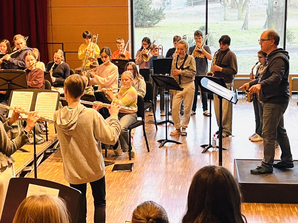 Neben Repertoirestücken konnten die einzelnen Orchestergruppen und der Chor an diesem Stück arbeiten, um es beim Tag der offenen Tür (10.03.2026) sowie beim Bläserklassenkonzert (15.05.2026) zur Aufführung zu bringen.