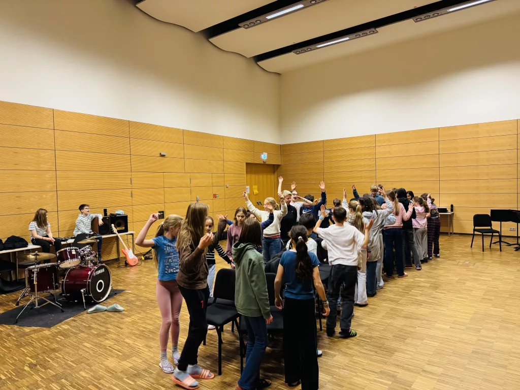 Das gemeinsame musikalische Tun klassenübergreifend zu erleben, steht bei diesem Format im Vordergrund. Es stärkt das Miteinander in der Schulgemeinschaft und ist intensiv lernendes musikalisches Handeln zugleich.