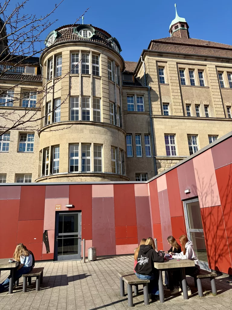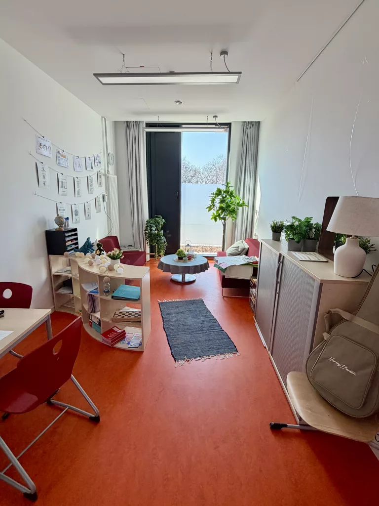 Der C-Trakt bietet nach Abschluss der Bauphase mehrere direkte Ausgänge zum Schulhof und hat im Erdgeschoss ab dieser Woche etwas ganz Besonderes: Neben dem Beratungsraum für Gespräche gibt es einen ganz neu eingerichteten Ruheraum für Schülerinnen und Schüler. Der Abiturjahrgang 2025 hat sehr großzügig Geld gespendet und die Idee für diesen Raum gleich dazu geliefert. Herr Ivanovs hat sich mit engagierten Schüler*innen um die konkrete Einrichtung gekümmert und so gibt es hier nun sechs kleine Kabinen als Rückzugsmöglichkeit für wirklich ruhige Momente, wenn jemand mal Ruhe sucht.