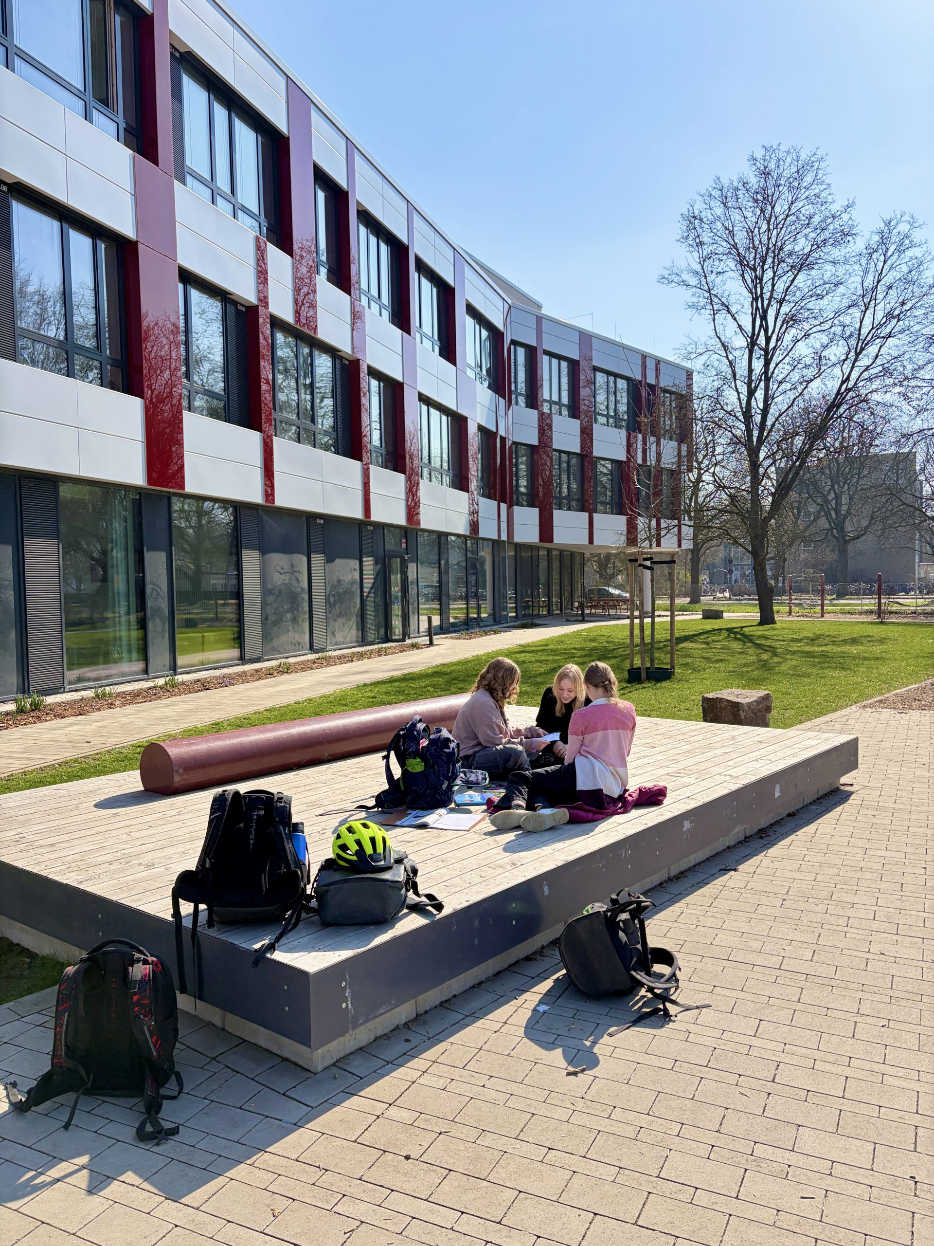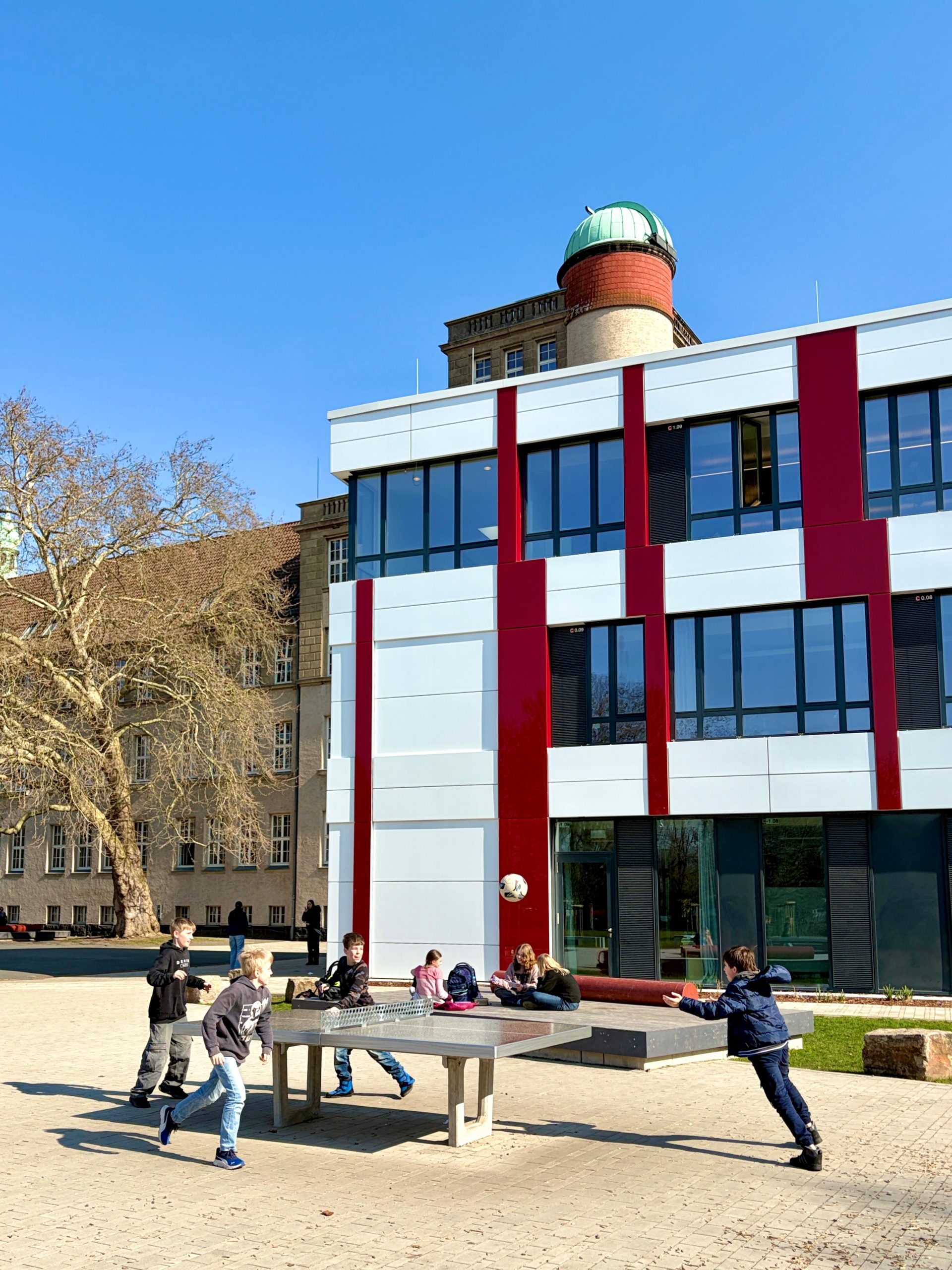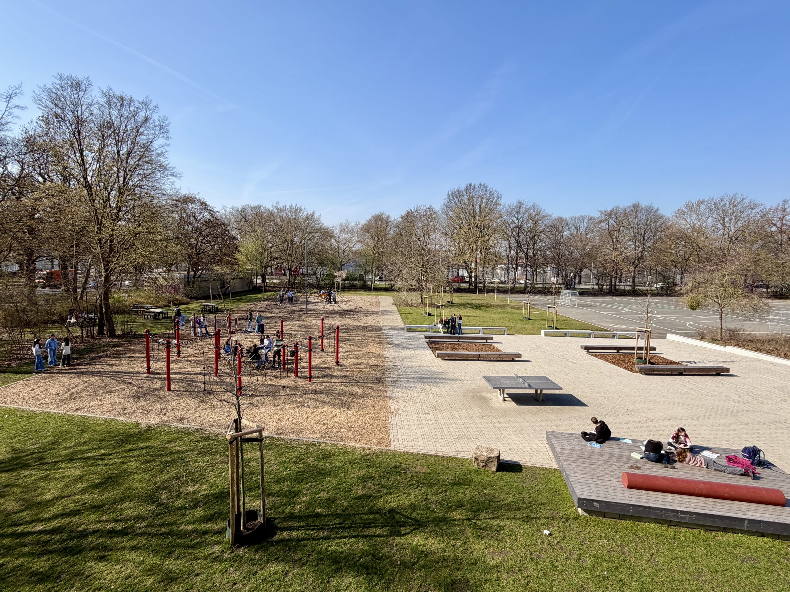 Wir haben noch nie so ein umfassendes Pausenangebot zum Spielen, Toben, Klettern, Sitzen, Quatschen und Ausruhen gehabt wie jetzt und sind stolz darauf. Herzlichen Dank an alle Beteiligte, die in den letzten drei Jahren dazu beigetragen haben – wir freuen uns riesig über das Ergebnis!